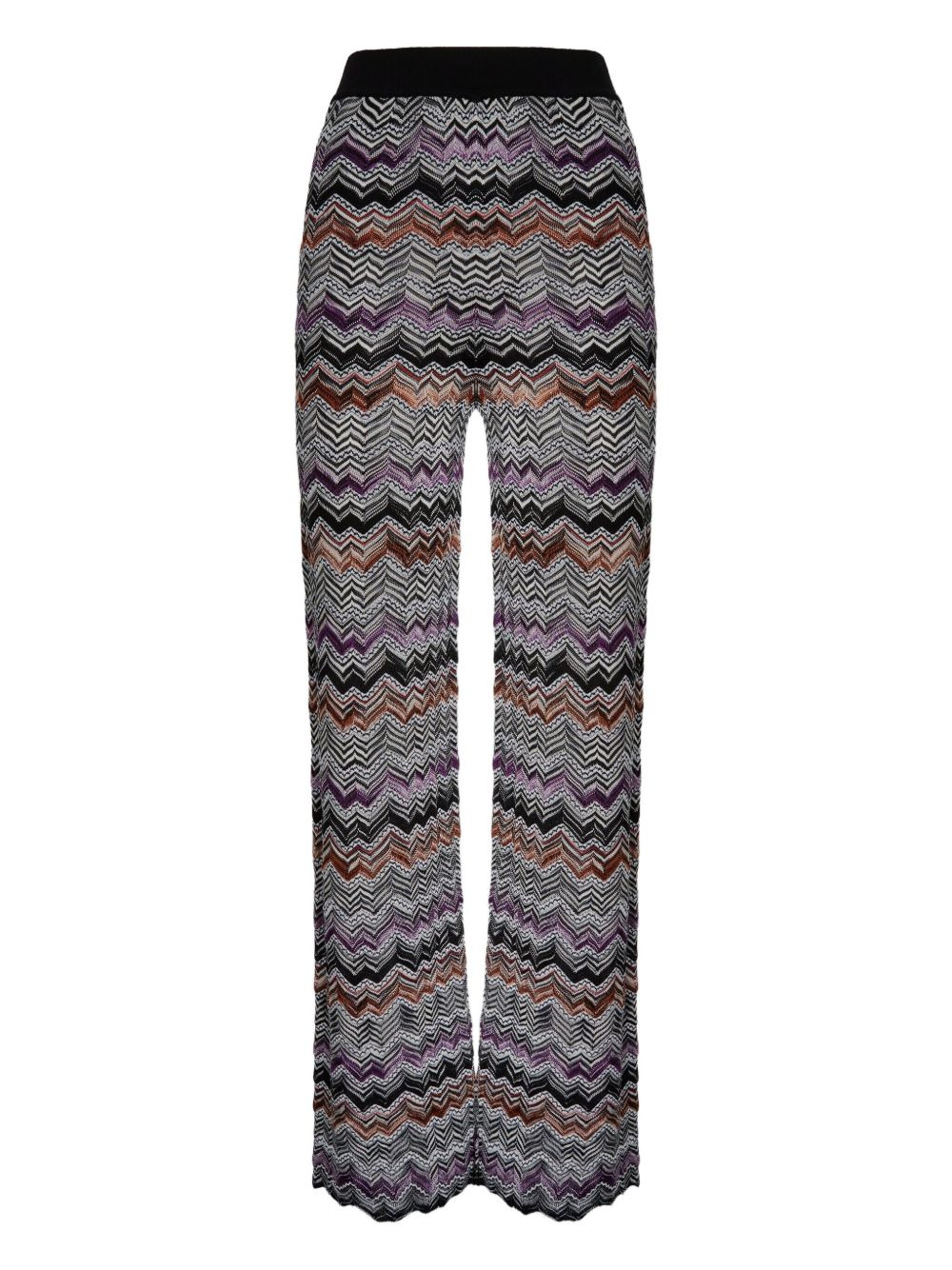 chevron-pattern knit straight trousers Highlights - Black - Chevron pattern - Knit texture - Elasticated waistband - The item you receive may differ slightly from the item photographed. this is due to the artisanal nature with which all missoni products are constructed. Made in Italy Composition Viscose 83%, Cotton 15%, Elastane 1%, Polyamide 1% Washing instructions Read Manufacturer Guidelines