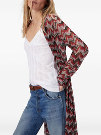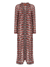 chevron-pattern maxi cardigan Highlights - Red - Chevron pattern - Long sleeves - Open front - Maxi length - The item you receive may differ slightly from the item photographed. this is due to the artisanal nature with which all missoni products are constructed. Made in Italy Composition Rayon 89%, Metallised Fibres 11% Washing instructions Read Manufacturer Guidelines