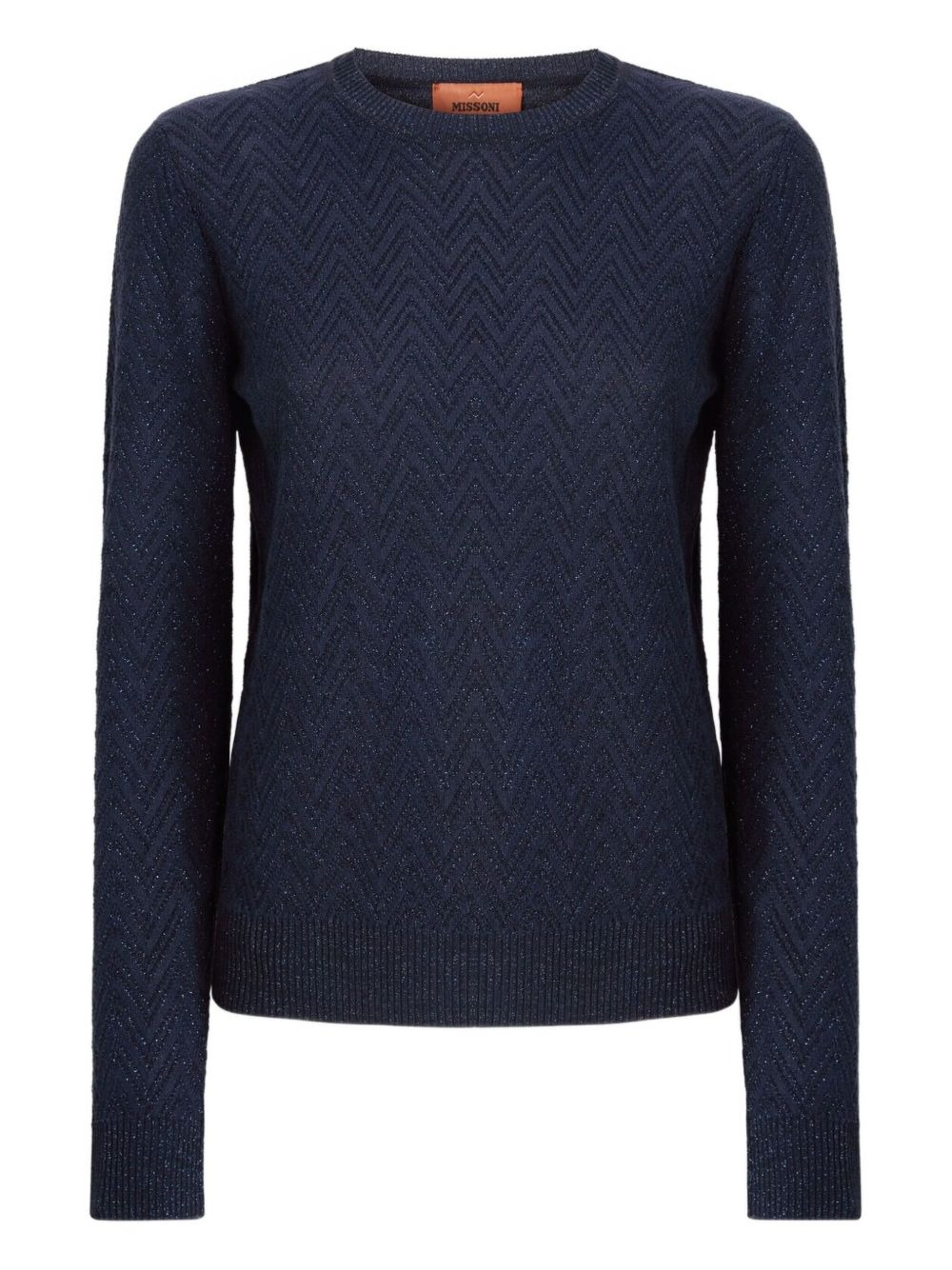 chevron-pattern sweater Highlights - Navy blue - Chevron pattern - Round neck - Long sleeves - The item you receive may differ slightly from the item photographed. this is due to the artisanal nature with which all missoni products are constructed. Imported Composition Cotton 55%, Rayon 31%, Metallic Fibre 6%, Polyester 6%, Elastane 1%, Polyamide 1% Washing instructions Read Manufacturer Guidelines