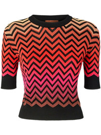 Short-sleeved crewneck sweater with dégradé chevron motif
