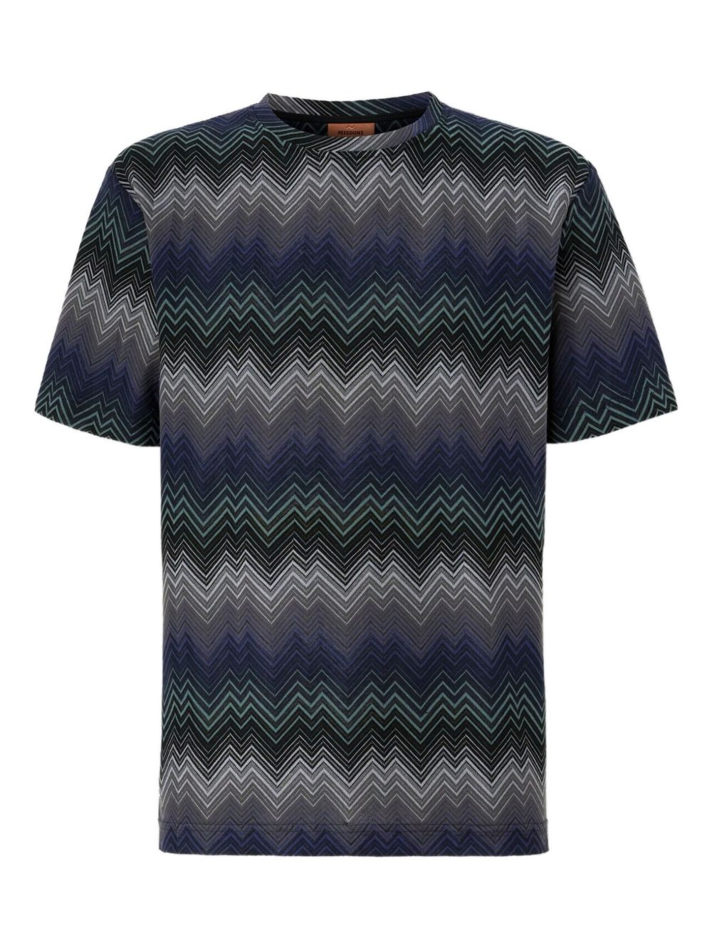 chevron-pattern T-shirt Highlights - Dark-blue - Chevron pattern - Short sleeves - Crew neck - Straight hem - The item you receive may differ slightly from the item photographed. this is due to the artisanal nature with which all missoni products are constructed. Made in Italy Composition Cotton 77%, Polyester 23% Washing instructions Read Manufacturer Guidelines