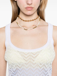 chevron-pattern tank top Highlights - White - Scoop neck - Sleeveless - Ribbed trim - The item you receive may differ slightly from the item photographed. this is due to the artisanal nature with which all missoni products are constructed. Made in Italy Composition Viscose 100% SIZE & FIT Model measurements Height 5 ft 9 in(1.75 m) Bust/Chest 31.88 in(81 cm) Hips 34.64 in(88 cm) Waist 24.01 in(61 cm) FittingInformation Designed for a slim fit that sits just away from the body offering a close yet comfortable fit Made with a fine knit, this piece offers some stretch