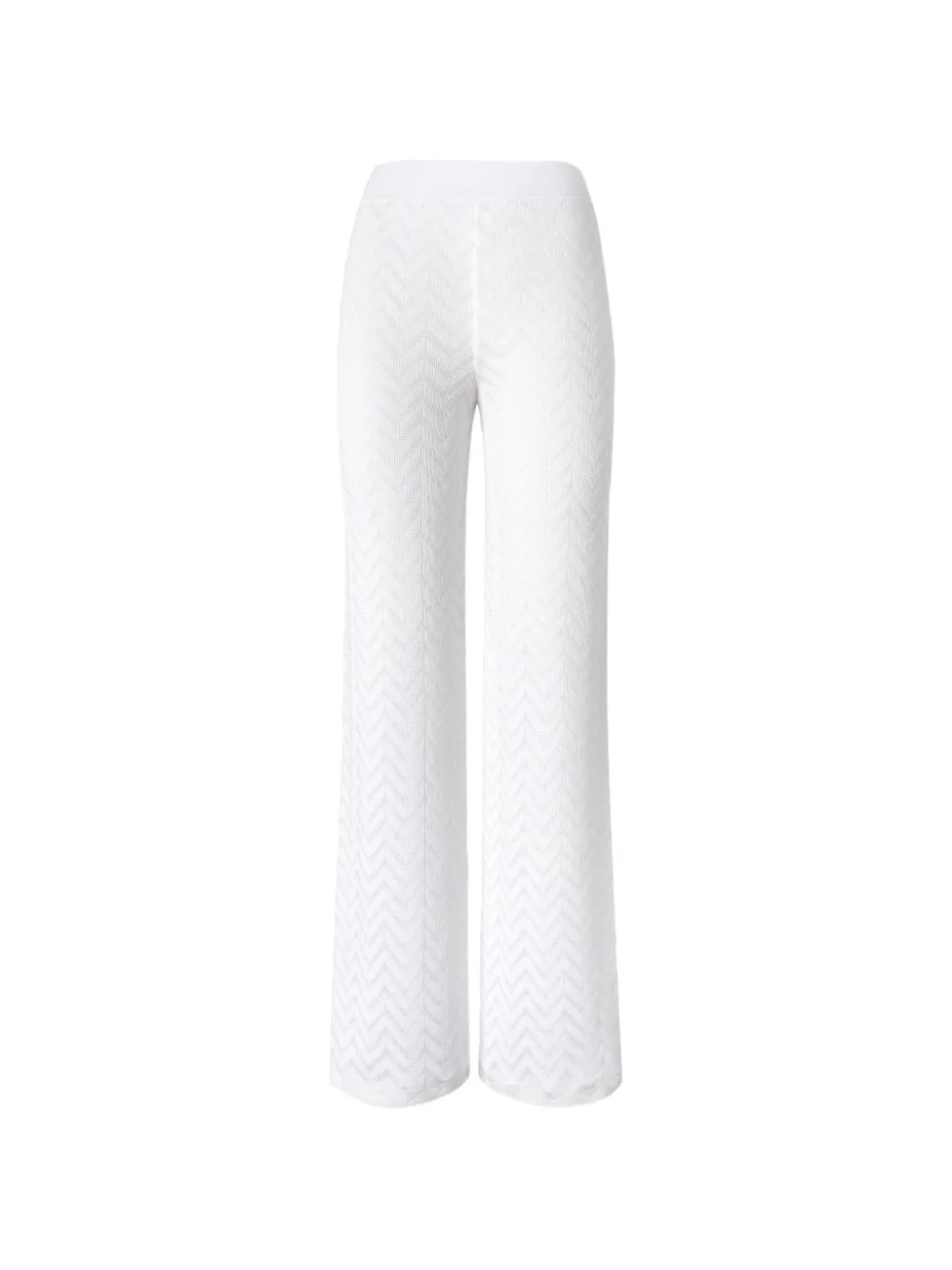chevron-pattern trousers Highlights - White - Chevron pattern - Elasticated waistband - The item you receive may differ slightly from the item photographed. this is due to the artisanal nature with which all missoni products are constructed. Imported Composition Cotton 65%, Rayon 33%, Elastane 1%, Polyamide 1% Washing instructions Read Manufacturer Guidelines