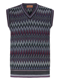 chevron-pattern V-neck sweater vest Highlights - Dark-purple - Chevron pattern - V-neck - Sleeveless - Ribbed hem - Knitted - The item you receive may diff er slightly from the item photographed. this is due to the artisanal nature with which all missoni products are constructed. Made in Italy Composition Wool 100% Washing instructions Read Manufacturer Guidelines