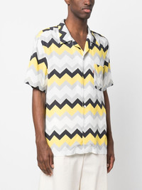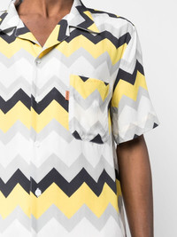 chevron-print short-sleeve shirt Missoni celebrates its iconic house codes in laidback fashion for SS23. This short-sleeved shirt is cut for a relaxed silhouette and adorned with the brand's signature chevron stripes. Highlights - White/yellow/grey - Chevron print - Classic collar - Chest patch pocket - Front button fastening - Short sleeves - Straight hem - The item you receive may differ slightly from the item photographed. this is due to the artisanal nature with which all missoni products are constructed. Imported Composition Viscose 100% SIZE & FIT Model measurements Height 6 ft 0 in(1.84 m) Bust/Chest 36.22 in(92 cm) Hips 35.43 in(90 cm) Waist 26.77 in(68 cm) FittingInformation This piece fits true to size. We recommend you get your regular size Cut for a loose fit Made with a mid-weight non-stretch fabric Washing instructions Machine Wash