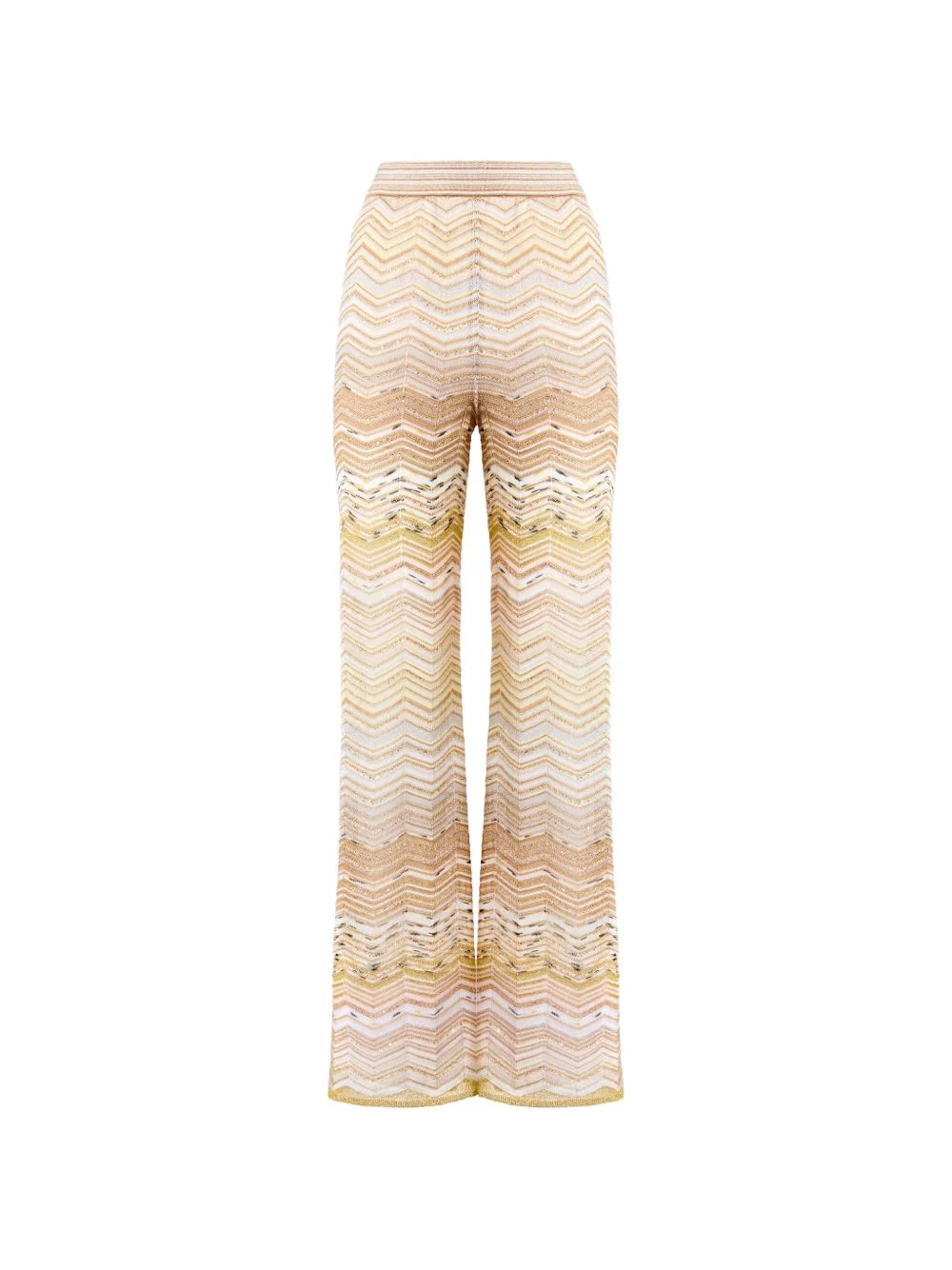 chevron sequin-embellished trousers Highlights - Beige - Chevron pattern - Wide leg - Elasticated waistband - Semi-sheer design - Straight hem - The item you receive may differ slightly from the item photographed. this is due to the artisanal nature with which all missoni products are constructed. Made in Italy Composition Lining: Polyester 82%, Elastane 18% Outer: Rayon 76%, Metallic Fibre 13%, Polyamide 11% Washing instructions Dry Clean Only
