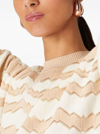 chevron sweater Highlights - Beige - Chevron motif - Crew neck - Long sleeves - Ribbed hem and cuffs - The item you receive may differ slightly from the item photographed. this is due to the artisanal nature with which all missoni products are constructed. Made in Italy Composition Rayon 50%, Wool 35%, Polyester 15% Washing instructions Hand Wash