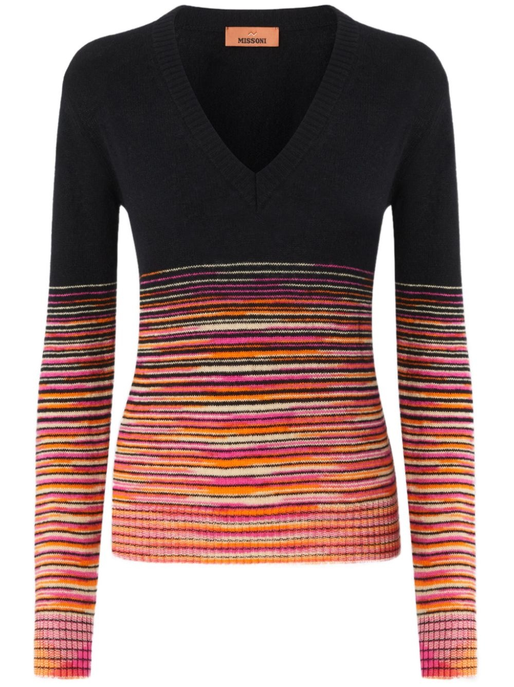 degrade-effect cashmere sweater Highlights - Black - V-neck - Long sleeves - Ribbed cuffs and hem - The item you receive may differ slightly from the item photographed. this is due to the artisanal nature with which all missoni products are constructed. Made in Italy Composition Cashmere 100%