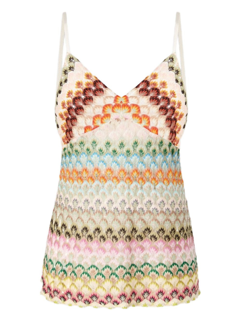 sleeveless lace top Highlights - Multicolour - Spaghetti straps - V-neck - Sleeveless - The item you receive may differ slightly from the item photographed. this is due to the artisanal nature with which all missoni products are constructed. Made in Italy Composition Lining: Polyester 100% Outer: Rayon 100% Washing instructions Read Manufacturer Guidelines