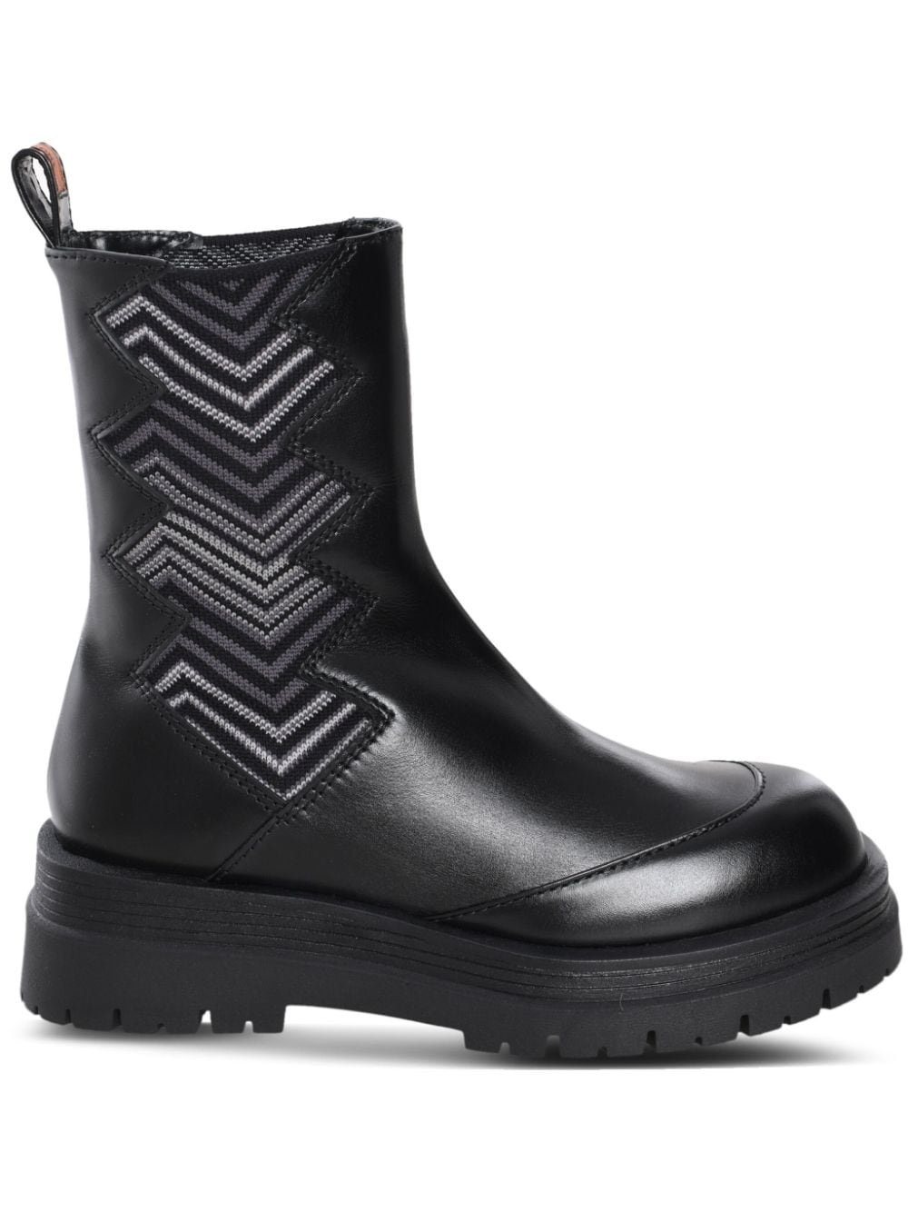 embroidered-design boots Highlights - Black - Calf leather - Signature zigzag woven design - Pull-tab at the heel - Round toe - Chunky rubber sole - Pull-on style Made in Italy Composition Leather 100%