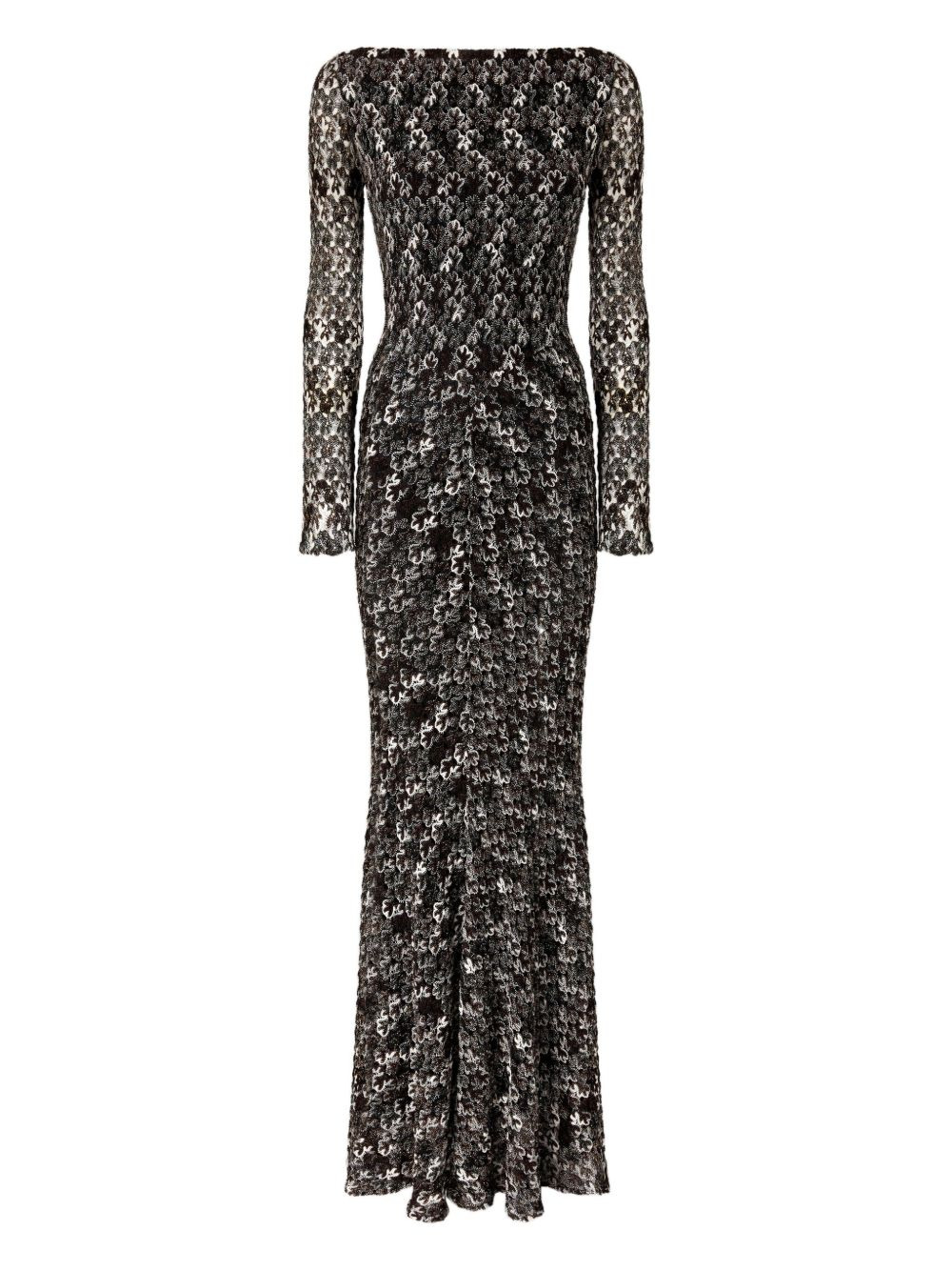 floral-lace long-sleeve maxi dress Highlights - Black - Floral lace - Long sleeves - Fishtail skirt - The item you receive may differ slightly from the item photographed. this is due to the artisanal nature with which all missoni products are constructed. Made in Italy Composition Outer: Rayon 100%, Metallic Fibre 9% Lining: Polyester 82%, Elastane 18% Washing instructions Read Manufacturer Guidelines