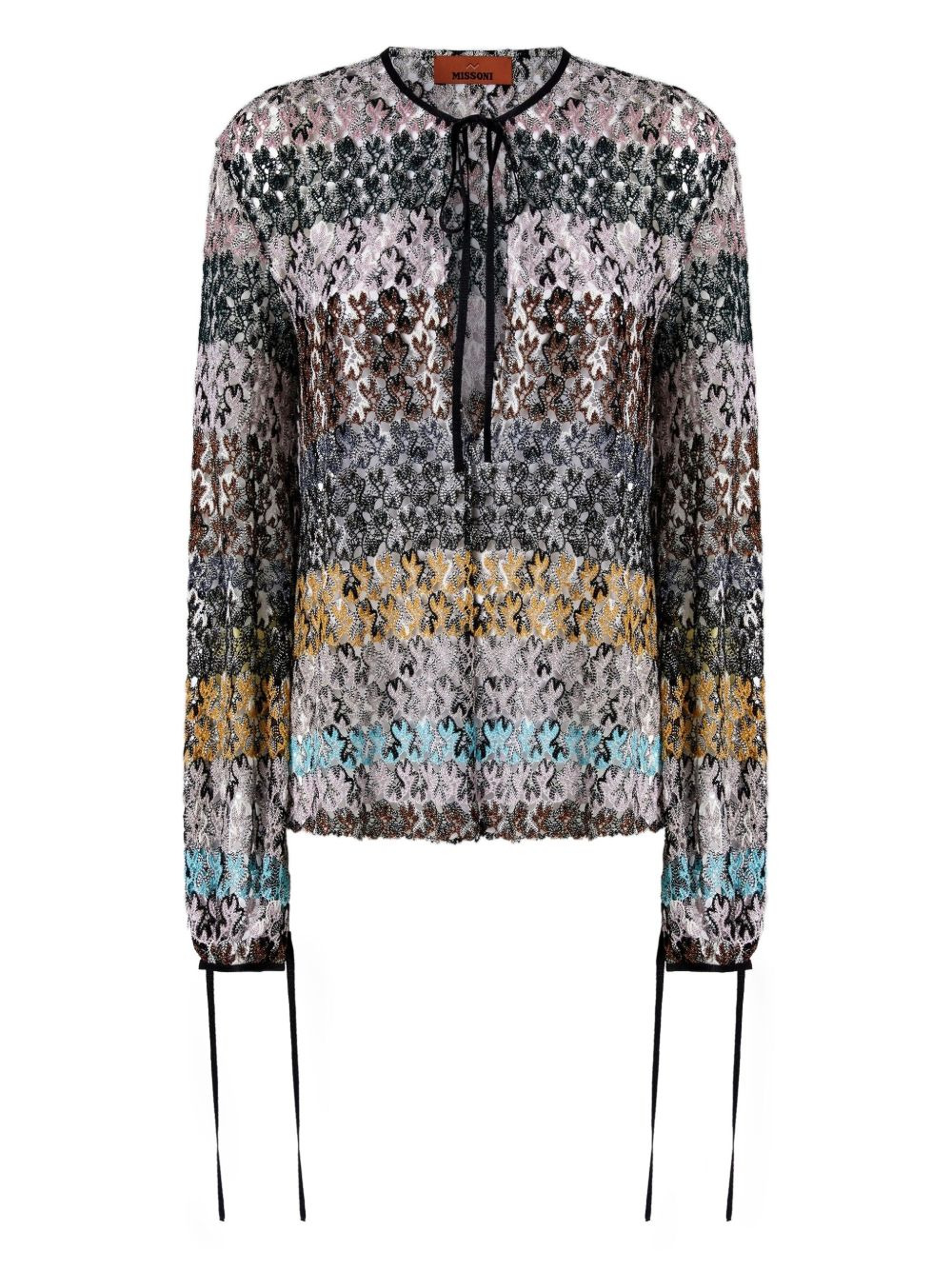 floral-lace long-sleeve top Highlights - Multicolored - Floral lace - Long sleeves - Keyhole neckline - Tie fastening - Balloon sleeves - The item you receive may differ slightly from the item photographed. this is due to the artisanal nature with which all missoni products are constructed. Made in Italy Composition Rayon 92%