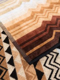 Giacomo 2 piece bath and hand towel set Highlights - Brown/multicolour - Cotton - Zigzag print - Finished edge - Hand towel and bath towel - The item you receive may differ slightly from the item photographed. this is due to the artisanal nature with which all missoni products are constructed. Imported Composition Cotton 100% SIZE & FIT Measurement LENGTH 83.85 in(213 cm) WIDTH 28.74 in(73 cm) Washing instructions Machine Wash