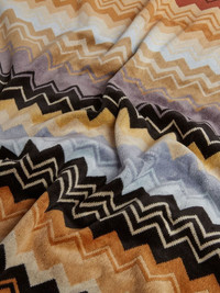 Giacomo bath sheet brown/multicolour cotton zigzag print towelling finish finished edge The item you receive may differ slightly from the item photographed. This is due to the artisanal nature in which all Missoni products are constructed. Imported Composition Cotton 100% SIZE & FIT Measurement LENGTH 60.62 in(154 cm) WIDTH 39.37 in(100 cm)