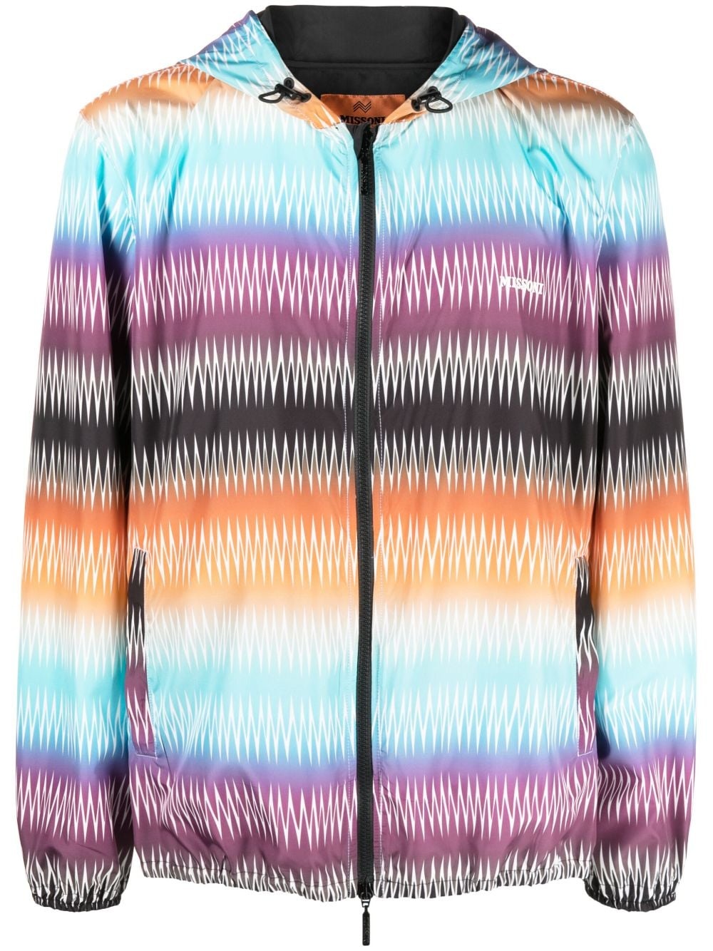 gradient zigzag-print hooded jacket Highlights - Blue/multicolour - Gradient effect - Zigzag print - Embroidered logo at the chest - Drawstring hood - Front zip fastening - Long sleeves - Elasticated cuffs and hem - Two side slit pockets - Straight hem - The item you receive may differ slightly from the item photographed. this is due to the artisanal nature with which all missoni products are constructed. Imported Composition Polyester 100% SIZE & FIT Model measurements Height 6 ft 2 in(1.87 m) Bust/Chest 36.41 in(92.5 cm) Hips 37 in(94 cm) Waist 29.52 in(75 cm) FittingInformation Designed for a relaxed fit, this piece allows for comfort and movement when worn The adjustable drawstring means that you can adjust this piece’s fit to suit your comfort and preference Made from a lightweight non-stretch fabric This piece fits true to size – take your usual size