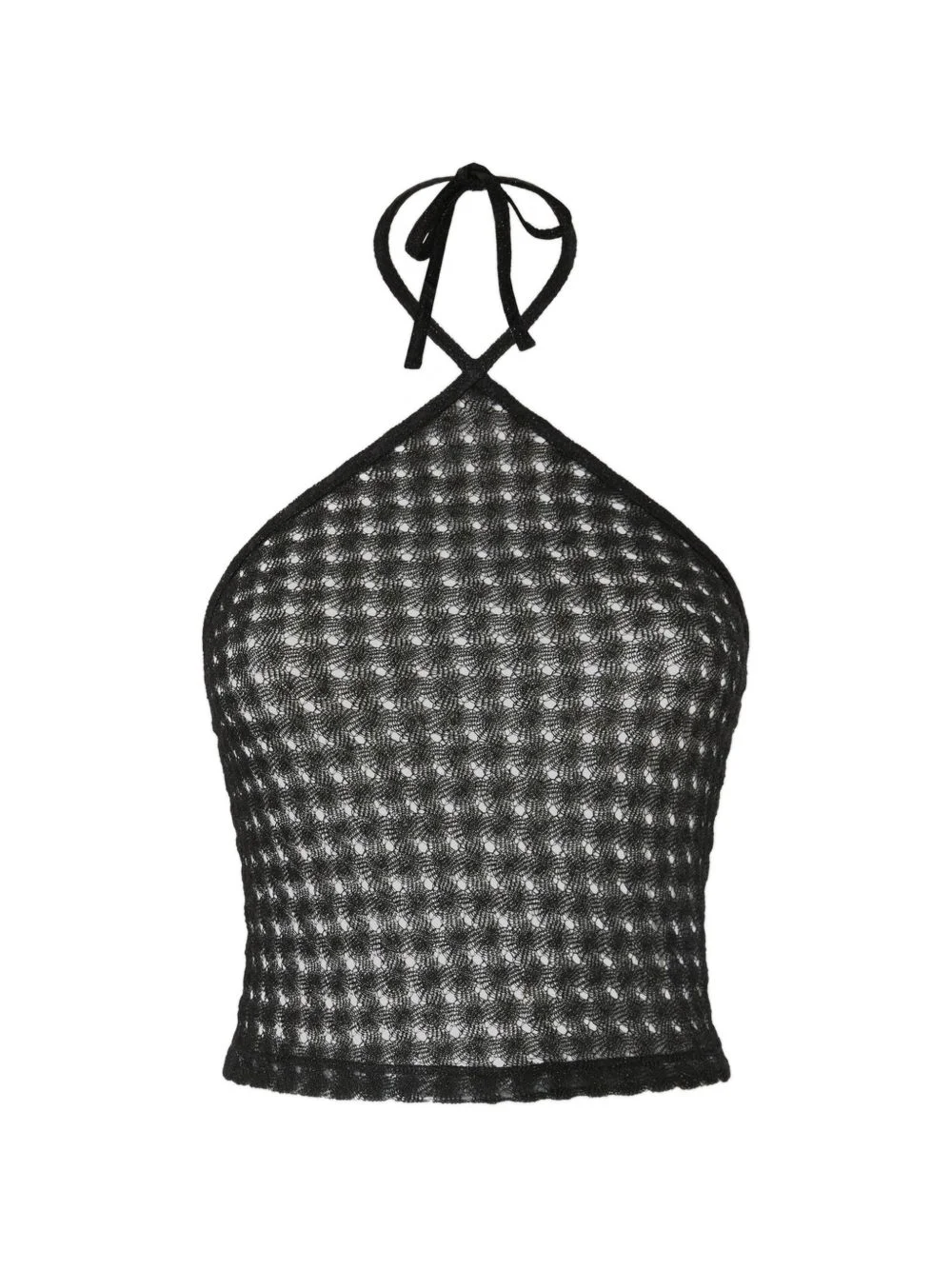 Top in lamé viscose with raschel workmanship and halter neckline