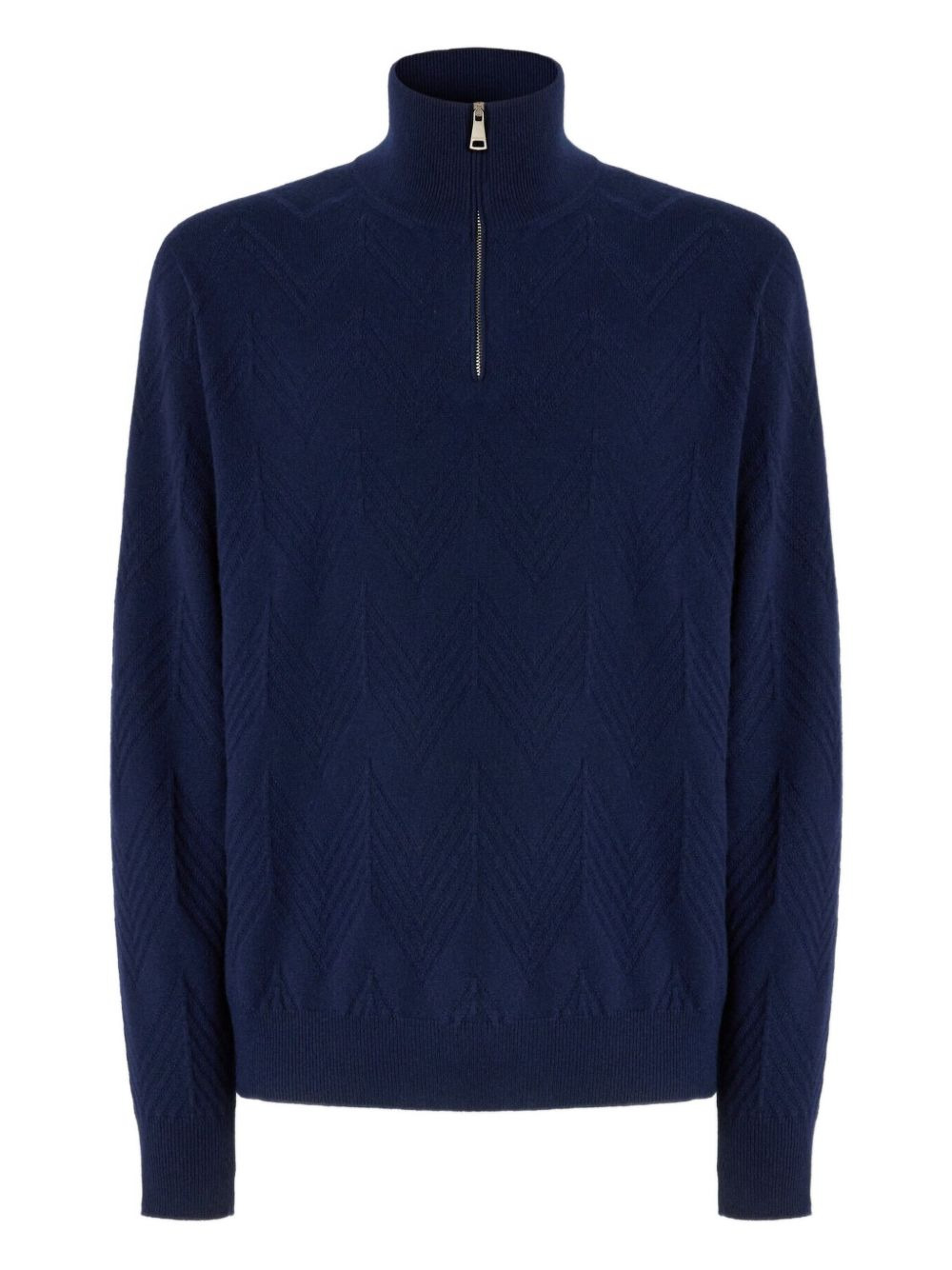 herringbone half-zip sweater Highlights - Navy blue - Herringbone pattern - Half-zip fastening - Long sleeves - Ribbed cuffs - Straight hem - The item you receive may differ slightly from the item photographed. this is due to the artisanal nature with which all missoni products are constructed. Made in Italy Composition Cashmere 100%