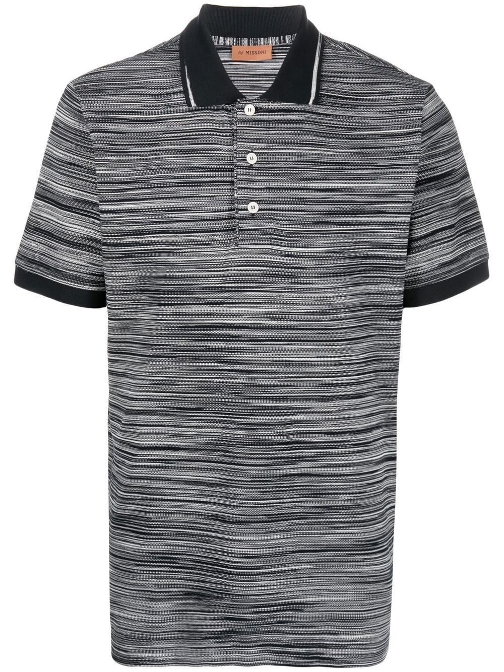 horizontal-stripe knitted polo shirt Missoni's AW22 collection includes this classic polo shirt design, which has been updated with a black and white colourway. Staying true to the brand's signature knitted construction techniques, this short-sleeve design features an all-over horizontal stripe pattern. Imported Composition Cotton 100% SIZE & FIT Model measurements Height 6 ft 2 in(1.89 m) Bust/Chest 39.76 in(101 cm) Hips 37.4 in(95 cm) Waist 29.92 in(76 cm) Measurement CHEST 37 in(94 cm) SLEEVE LENGTH 9.44 in(24 cm) LENGTH 27.16 in(69 cm) Shoulder Width 16.92 in(43 cm) FittingInformation This piece fits true to size. We recommend you get your regular size Cut for a relaxed fit Made with a mid-weight fabric Washing instructions Machine Wash