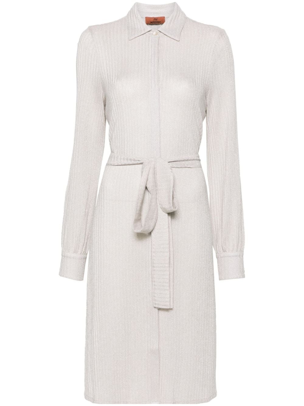 lame-effect belted shirtdress Highlights - Light beige - Cotton blend - Fine knit - Metallic threading - Lame effect - Classic collar - Concealed front button fastening - Long sleeves - Buttoned cuffs - Detachable waist belt - Belt loops - Short side slits - Unlined - Straight hem - Knee-length - The item you receive may differ slightly from the item photographed. this is due to the artisanal nature with which all missoni products are constructed. Made in Italy Composition Cotton 59%, Viscose 26%, Metallic Fibre 15% SIZE & FIT Model measurements Height 5 ft 10 in(1.78 m) Bust/Chest 33.07 in(84 cm) Hips 36.61 in(93 cm) Waist 24.8 in(63 cm) FittingInformation Designed for a relaxed fit, this piece allows for comfort and movement when worn The belt offers adjustability for fitted preferences Made with a midweight knit, this piece offers some stretch This piece fits true to size – take your usual size