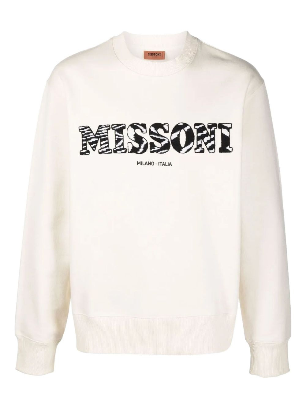 logo sweatshirt Highlights - Cream - Zebra-print logo - Cotton - Crew neck - Long sleeves - Ribbed cuffs - The item you receive may differ slightly from the item photographed. this is due to the artisanal nature with which all missoni products are constructed. Made in Italy Composition Cotton 100% Washing instructions Read Manufacturer Guidelines