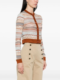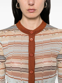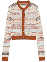 lurex-detail cardigan Highlights - Light brown - Front button fastening - Ribbed cuffs and hem - Crew neck - The item you receive may differ slightly from the item photographed. this is due to the artisanal nature with which all missoni products are constructed. Made in Italy Composition Viscose 65%, Cotton 27%, Metallised Fibres 8% SIZE & FIT Model measurements Height 5 ft 10 in(1.78 m) Bust/Chest 33.46 in(85 cm) Hips 36.22 in(92 cm) Waist 23.22 in(59 cm) FittingInformation Designed for a close fit throughout Made with a fine knit, this piece offers some stretch