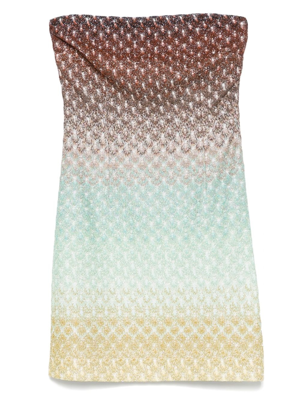 metallic-threading mini dress Highlights - Light green - Concealed side hook and zip fastening - Strapless - Straight hem - The item you receive may differ slightly from the item photographed. this is due to the artisanal nature with which all missoni products are constructed. Made in Italy Composition Viscose 82%, Metallic Fibre 18% SIZE & FIT Model measurements Height 5 ft 10 in(1.77 m) Bust/Chest 32.28 in(82 cm) Hips 35.03 in(89 cm) Waist 25.19 in(64 cm) FittingInformation Designed for a slim fit that sits just away from the body offering a close yet comfortable fit Made with a fine knit, this piece offers some stretch