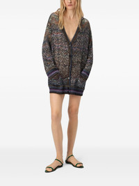 Oversized V-Neck Cardigan with Zigzag Pattern