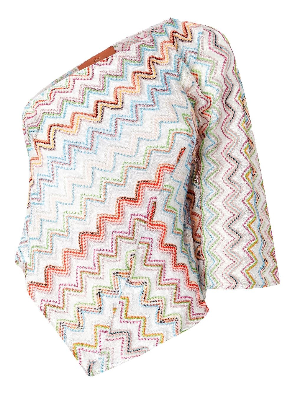 one-shoulder top Highlights - White - Single three-quarter length sleeve - Asymmetric hem - Signature zigzag woven design - The item you receive may differ slightly from the item photographed. this is due to the artisanal nature with which all missoni products are constructed. Made in Italy Composition Outer: Rayon 61%, Polyester 30%, Metallised Fibres 9%