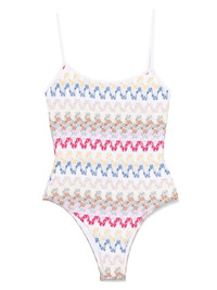 open-knit swimsuit Highlights - White - Rear tie fastening - Spaghetti straps - Full lining - Be mindful to try on swimwear over your own garments. - The item you receive may differ slightly from the item photographed. this is due to the artisanal nature with which all missoni products are constructed. Made in Italy Composition Outer: Viscose 95%, Metallised Fibres 5% Lining: Polyamide 80%, Elastane 20% Washing instructions Hand Wash