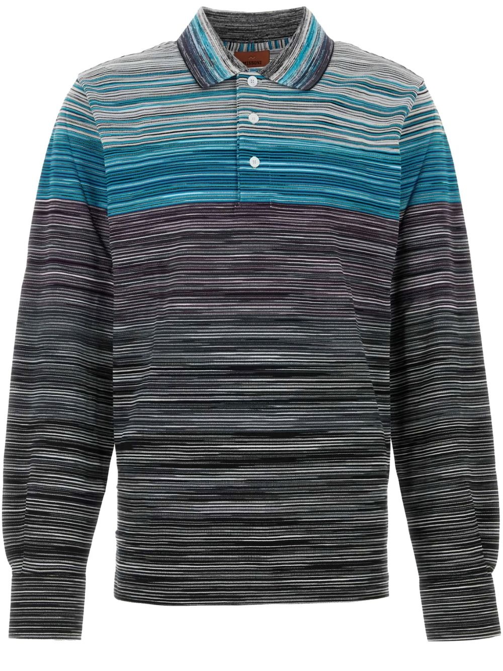 pique-weave polo shirt Highlights - Cerulean blue - Front button placket - Buttoned cuffs - Long sleeves - The item you receive may differ slightly from the item photographed. this is due to the artisanal nature with which all missoni products are constructed. Imported Composition Cotton 100%