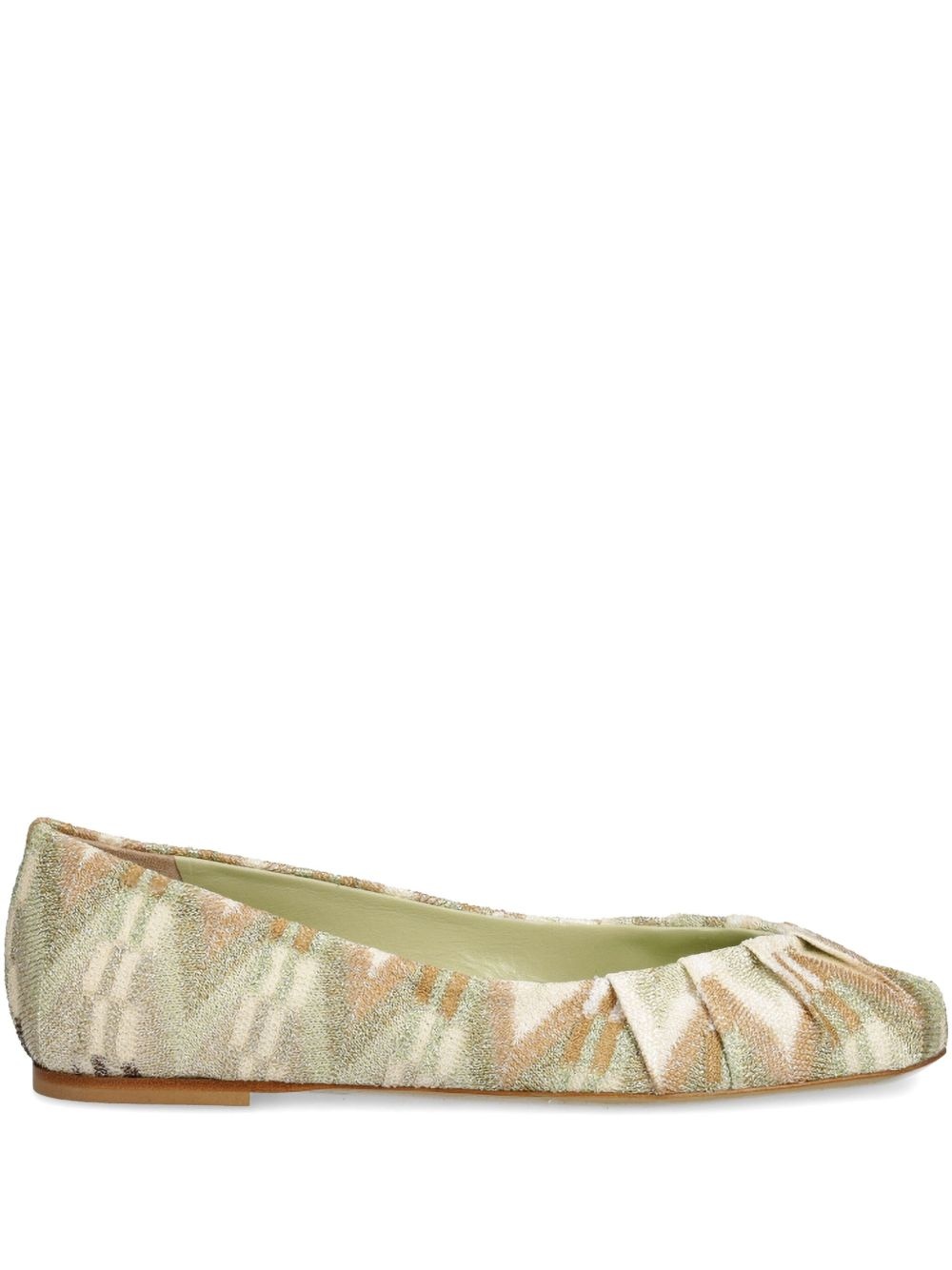 pleated-front ballerinas Highlights - Muted green - Pleated front detail - Almond toe - Low-profile silhouette - Soft lining - Slip-on design - Flat sole - Textured finish - The item you receive may differ slightly from the item photographed. this is due to the artisanal nature with which all missoni products are constructed. Imported Composition Lining: Calf Leather 100% Outer: Fabric 100% Sole: Calf Leather 100%
