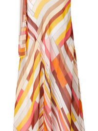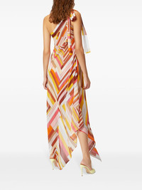One-shoulder cover-up dress in printed silk with scarf bottom