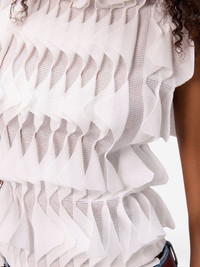 ruffle-layered sleeveless blouse Highlights - White - Turtleneck - Layered ruffles - Sleeveless design - Geometric pattern - The item you receive may differ slightly from the item photographed. this is due to the artisanal nature with which all missoni products are constructed. Made in Italy Composition Rayon 76%, Polyamide 24%