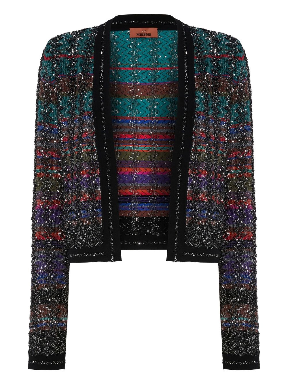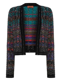 sequin-embellished cardigan Highlights - Black/multicolor - Sequin embellishment - Striped pattern - Long sleeves - Cropped - The item you receive may differ slightly from the item photographed. this is due to the artisanal nature with which all missoni products are constructed. Made in Italy Composition Fabric 100% Washing instructions Read Manufacturer Guidelines