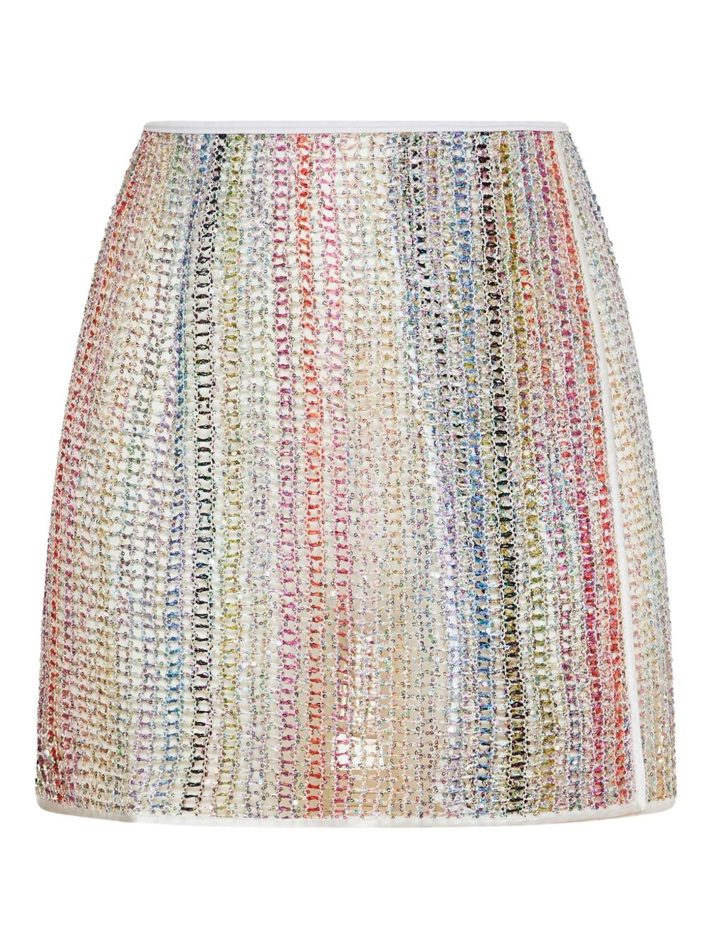 sequin-striped skirt Highlights - Beige - Sequin embellishment - Striped pattern - Straight hem Made in Italy Composition Viscose 61%, Metallic Fibre 23%, Polyamide 16% Washing instructions Read Manufacturer Guidelines