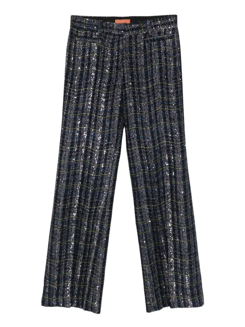 sequin trousers Highlights - Blue - Patterned - Sequin embellishment - The item you receive may differ slightly from the item photographed. this is due to the artisanal nature with which all missoni products are constructed. Made in Italy Composition Outer: Viscose 63%, Polyamide 16%, Metallised Fibres 8%, Wool 7%, Cotton 3%, Polyester 3% Lining: Polyester 100% SIZE & FIT Model measurements Height 5 ft 9 in(1.76 m) Bust/Chest 33.85 in(86 cm) Hips 35.43 in(90 cm) Waist 25.59 in(65 cm) Washing instructions Hand Wash