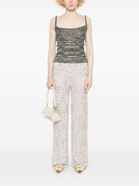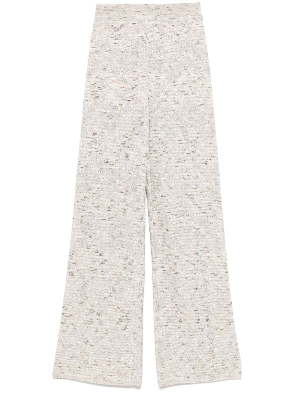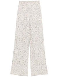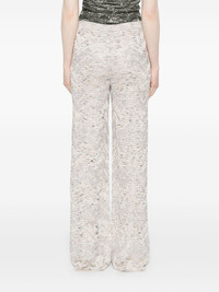 sequinned flared trousers Highlights - Light beige - Horizontal stripe pattern - Elasticated waistband - The item you receive may differ slightly from the item photographed. this is due to the artisanal nature with which all missoni products are constructed. Made in Italy Composition Outer: Viscose 44%, Polyamide 30%, Polyester 22%, Metallised Fibres 3%, Elastane 1% Lining: Polyester 82%, Elastane 18% SIZE & FIT Model measurements Height 5 ft 9 in(1.75 m) Bust/Chest 34.64 in(88 cm) Hips 36.61 in(93 cm) Waist 26.37 in(67 cm) FittingInformation Designed for a straight-leg fit, these trousers allow for a close fit at the waist and an unrestricted, comfortable fit over the leg Made with a midweight knit, this piece offers some stretch Washing instructions Dry Clean Only