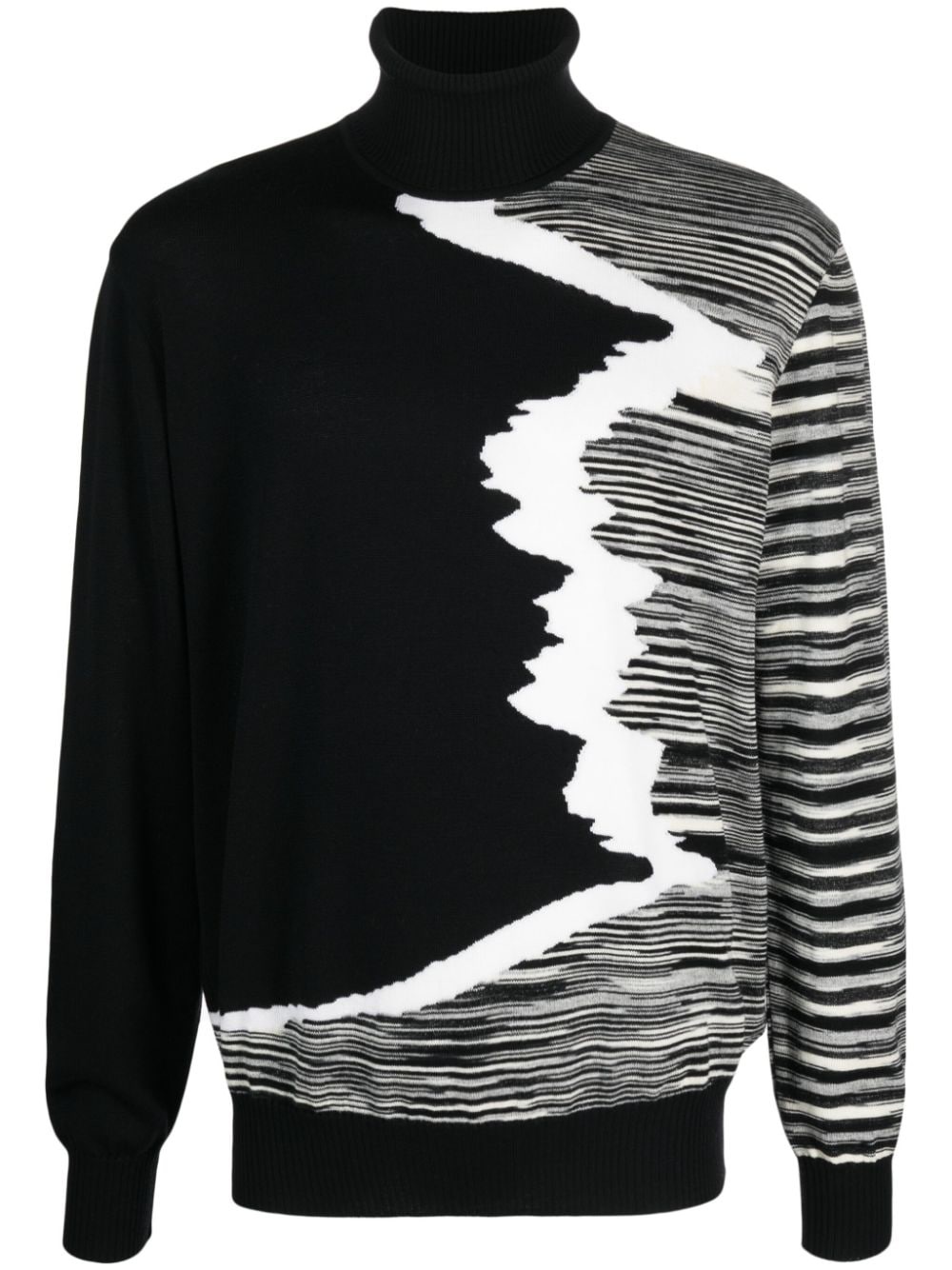 stripe-pattern roll-neck jumper Highlights - Black/white - Wool felt - Fine knit - Horizontal stripe pattern - Roll neck - Long sleeves - Ribbed cuffs and hem - The item you receive may differ slightly from the item photographed. this is due to the artisanal nature with which all missoni products are constructed. Made in Italy Composition Wool Felt 100% SIZE & FIT Model measurements Height 6 ft 2 in(1.88 m) Bust/Chest 36.61 in(93 cm) Hips 37.79 in(96 cm) Waist 28.74 in(73 cm) FittingInformation Designed for a relaxed fit, this piece allows for comfort and movement when worn The ribbed hem offers a close, comfortable fit Made with a midweight knit, this piece offers some stretch This piece fits true to size – take your usual size Washing instructions Hand Wash