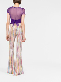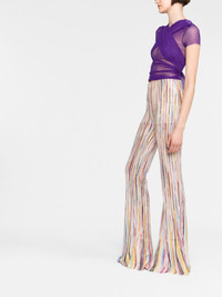 stripe-pattern semi-sheer flared trousers Highlights - White/multicolour - Stretch-design - Semi-sheer construction - Artist stripe pattern - Floor-length - The item you receive may differ slightly from the item photographed. this is due to the artisanal nature with which all missoni products are constructed. Made in Italy Composition Lining: Silk 96%, Spandex/Elastane 4% Outer: Viscose 90%, Polyester 8%, Polyamide 2% SIZE & FIT Model measurements Height 5 ft 10 in(1.78 m) Bust/Chest 31.49 in(80 cm) Hips 33.85 in(86 cm) Waist 24.01 in(61 cm) Measurement INSIDE LEG 30.7 in(78 cm) HIPS 33.85 in(86 cm) WAIST 21.25 in(54 cm) FittingInformation This piece fits true to size. We recommend you get your regular size Designed to be fitted at the waist and through the thigh, loose from the knee Made with a mid-weight stretch fabric Washing instructions Machine Wash