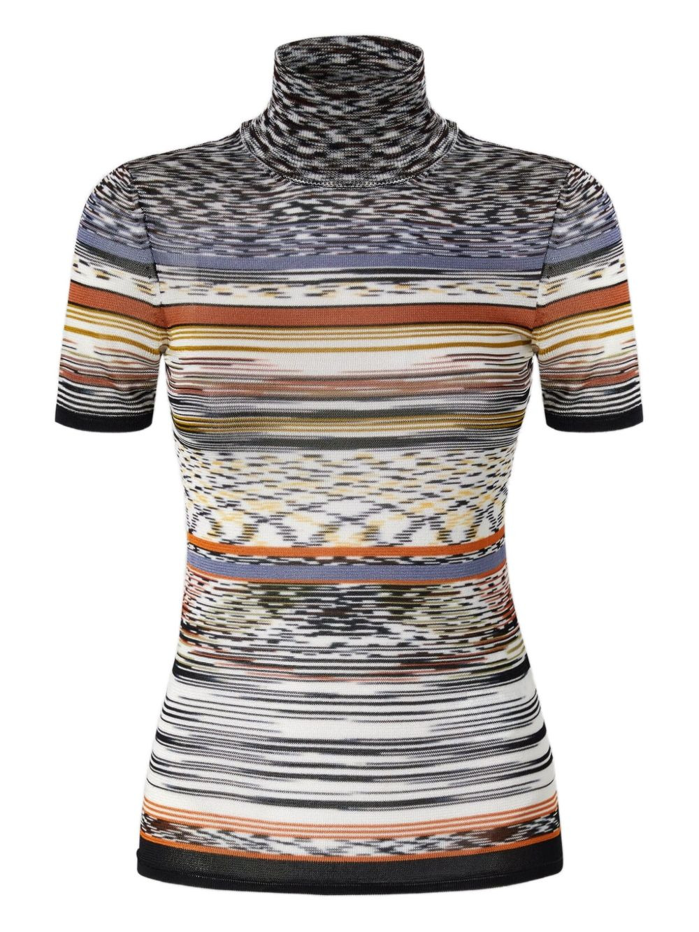 stripe-pattern turtleneck top Highlights - Multicolour - Turtleneck neck - Short sleeves - Horizontal stripes pattern - Abstract pattern - The item you receive may differ slightly from the item photographed. this is due to the artisanal nature with which all missoni products are constructed. Made in Italy Composition Rayon 100% Washing instructions Read Manufacturer Guidelines