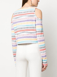 stripe-print knitted top Highlights - Multicolour - Stripe print - Cut-out detailing - Cropped - Round neck - Long sleeves - Straight hem - The item you receive may differ slightly from the item photographed. this is due to the artisanal nature with which all missoni products are constructed. Made in Italy Composition Polyester 40%, Viscose 40%, Polyamide 13%, Spandex/Elastane 7% SIZE & FIT Model measurements Height 5 ft 10 in(1.78 m) Bust/Chest 33.07 in(84 cm) Hips 35.82 in(91 cm) Waist 26.96 in(68.5 cm) FittingInformation Designed for a relaxed fit, this piece allows for comfort and movement when worn Made with a midweight knit, this piece offers some stretch This piece fits true to size – take your usual size