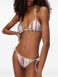 Flamed viscose bikini Highlights - Multicolour - Halterneck tie fastening - Rear tie fastening - Side-tie bottoms - Be mindful to try on swimwear over your own garments. - The item you receive may differ slightly from the item photographed. this is due to the artisanal nature with which all missoni products are constructed. Made in Italy Composition Outer: Rayon 88%, Metallic Fibre 12% Lining: Polyamide 80%, Spandex/Elastane 20%