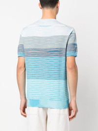 striped cotton T-shirt Highlights - Blue - Cotton - Horizontal stripe pattern - Round neck - Short sleeves - Straight hem - The item you receive may differ slightly from the item photographed. this is due to the artisanal nature with which all missoni products are constructed. Made in Italy Composition Cotton 100% SIZE & FIT Model measurements Height 6 ft 1 in(1.85 m) Bust/Chest 35.82 in(91 cm) Hips 37.79 in(96 cm) Waist 29.13 in(74 cm) FittingInformation This piece fits true to size. We recommend you get your regular size Cut for a relaxed fit Made with a mid-weight fabric Measurement CHEST 39.37 in(100 cm) SLEEVE LENGTH 18.11 in(46 cm) LENGTH 26.96 in(68.5 cm) Washing instructions Dry Clean Only