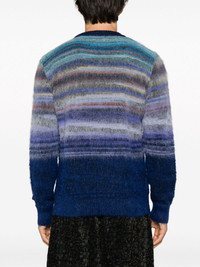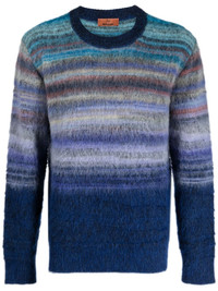 striped crew-neck jumper Highlights - Blue/purple/white - Knitted construction - Horizontal stripe pattern - Crew neck - Long sleeves - Ribbed cuffs and hem - Straight hem - The item you receive may differ slightly from the item photographed. this is due to the artisanal nature with which all missoni products are constructed. Made in Italy Composition Wool 30%, Polyamide 25%, Alpaca Wool 24%, Mohair 21% SIZE & FIT Model measurements Height 6 ft 2 in(1.89 m) Bust/Chest 37.79 in(96 cm) Hips 37 in(94 cm) Waist 29.92 in(76 cm) FittingInformation Designed for a relaxed fit, this piece allows for comfort and movement when worn Made with a midweight knit, this piece offers some stretch This piece fits true to size – take your usual size Washing instructions Hand Wash