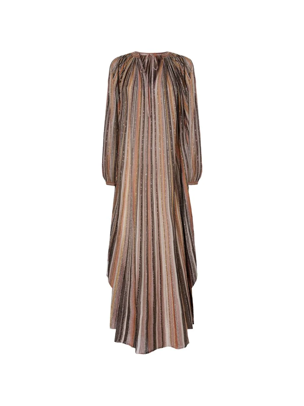 striped embellished dress Highlights - Stripe - Embellished detail - Tie fastening - Long sleeves - Draped design - Round neck - The item you receive may differ slightly from the item photographed. this is due to the artisanal nature with which all missoni products are constructed. Made in Italy Composition Rayon 77%, Metallic Fibre 14%, Polyamide 9% Washing instructions Read Manufacturer Guidelines