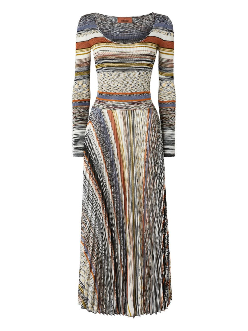 striped midi dress Highlights - Beige - A-line skirt - Striped pattern - Long sleeves - Scoop neck - The item you receive may differ slightly from the item photographed. this is due to the artisanal nature with which all missoni products are constructed. Made in Italy Composition Rayon 82%, Polyester 14%, Polyamide 3%, Elastane 1% Washing instructions Read Manufacturer Guidelines