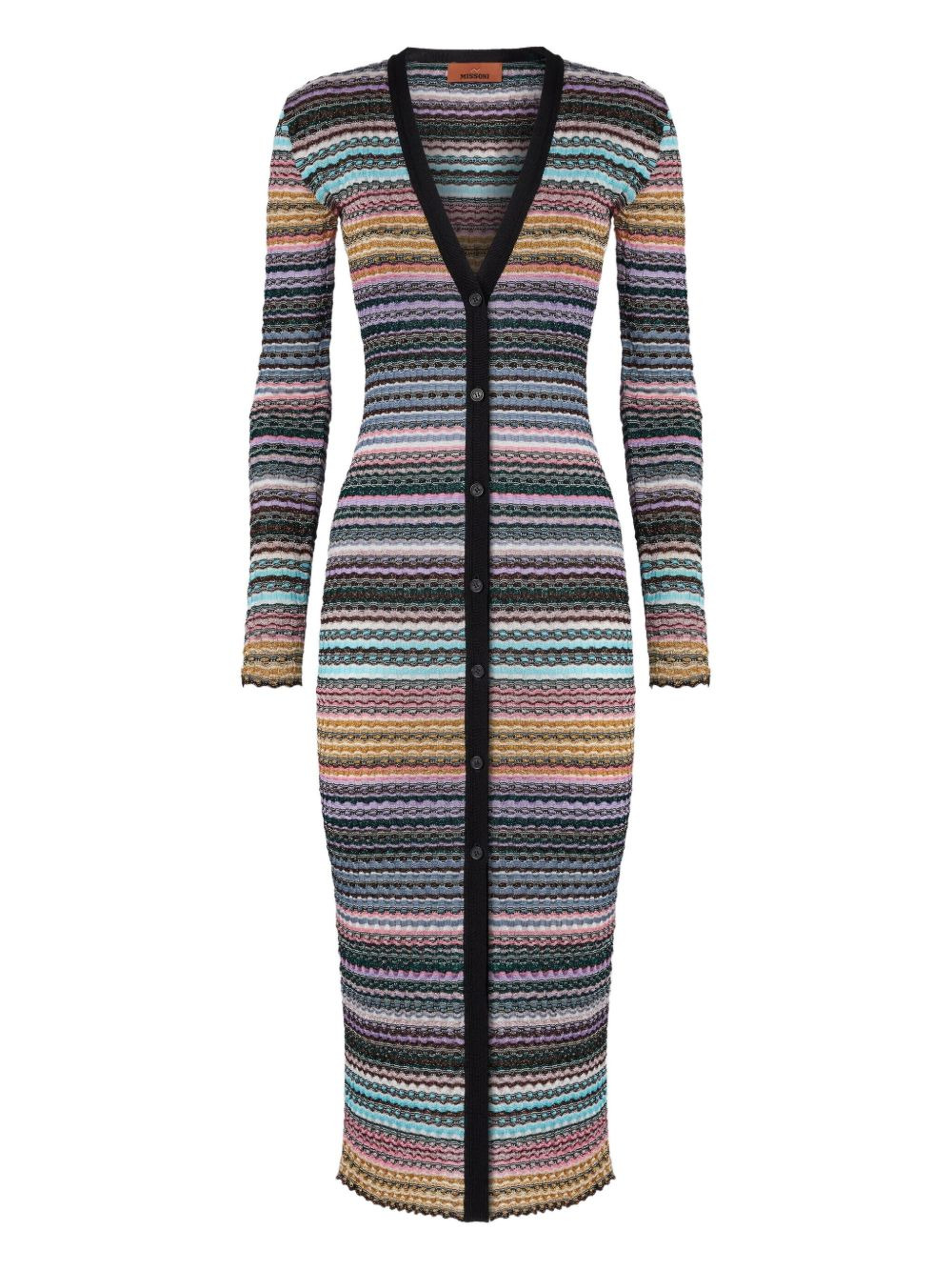 striped-pattern buttoned cardigan Highlights - Multi-colour - Striped pattern - V-neck - Long sleeves - Button fastening - The item you receive may differ slightly from the item photographed. this is due to the artisanal nature with which all missoni products are constructed. Imported Composition Rayon 85%, Metallic Fibre 12%, Polyamide 2%, Elastane 1% Washing instructions Read Manufacturer Guidelines