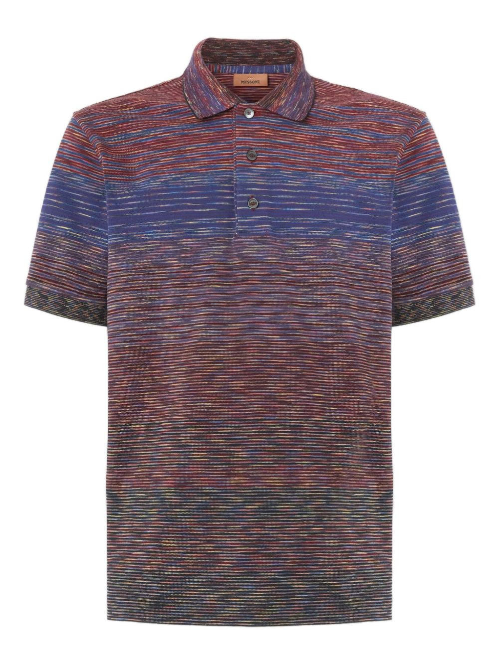 striped-pattern polo shirt Highlights - Dark-red purple blue - Short sleeves - Three-button placket - Horizontal stripes - Ombre effect Imported Composition Cotton 100% Washing instructions Read Manufacturer Guidelines