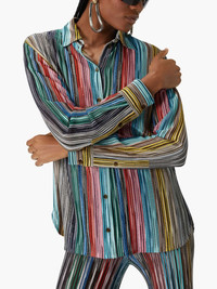 striped ribbed knit shirt Highlights - Multicolour - Lame effect - Ribbed knit - Vertical stripe embroidery - Classic collar - Front button fastening - Long sleeves - Buttoned cuffs - Straight hem - The item you receive may differ slightly from the item photographed. this is due to the artisanal nature with which all missoni products are constructed. Made in Italy Composition Rayon 97%, Metallic Fibre 3%