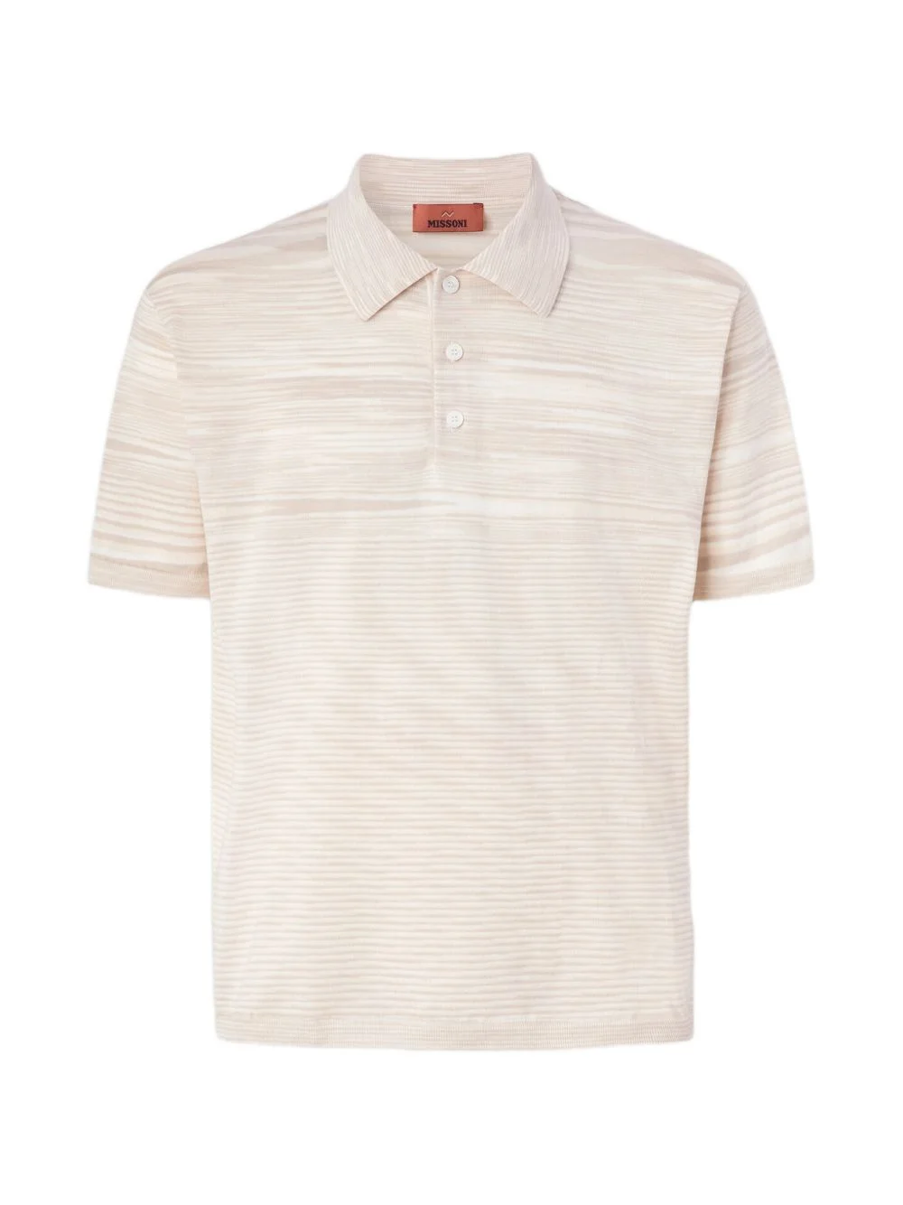 striped short-sleeve polo shirt Highlights - Off-white and beige - Stripe pattern - Button fastening - Short sleeves - Classic collar - The item you receive may differ slightly from the item photographed. this is due to the artisanal nature with which all missoni products are constructed. Made In Italy Composition Cotton 94%, Polyamide 5%, Elastane 1% Washing instructions Read Manufacturer Guidelines